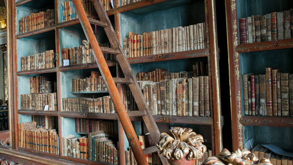 Biblioteca de A Bela e o Monstro inspirada na Biblioteca Joanina