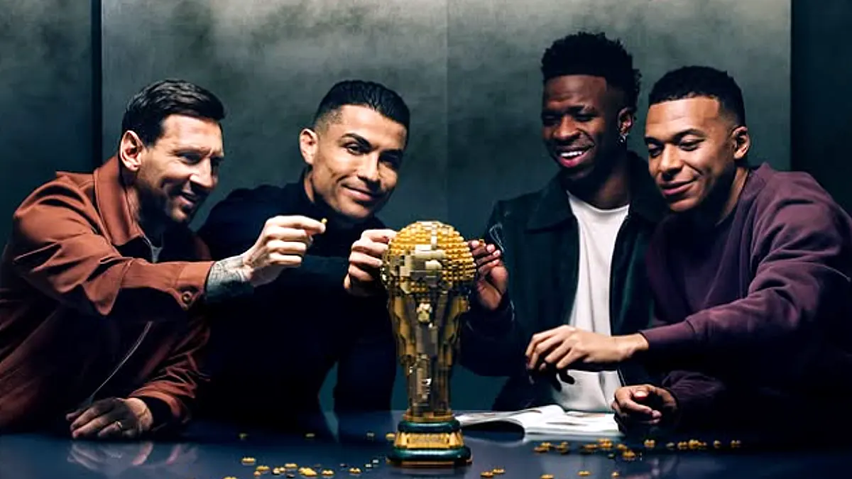 A LEGO lançou uma grande campanha que está a dominar as redes sociais ao reunir quatro dos maiores nomes do futebol mundial. Assim sendo junta Cristiano Ronaldo, Lionel Messi, Kylian Mbappé e Vinicius Júnior. A iniciativa promove a nova coleção dedicada ao Mundial de 2026, numa parceria estratégica com a FIFA, e tem como peça central um troféu à escala real que rapidamente se tornou objeto de desejo entre fãs.