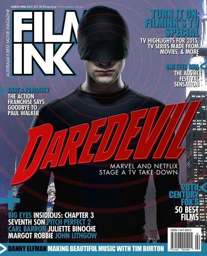 A edição deste mês da revista australiana Film Ink traz na capa o Daredevil que Charlie Cox irá interpretar na nova série da Marvel em parceria com a Netflix sobre o advogado Matt Murdock e seu alter-ego.