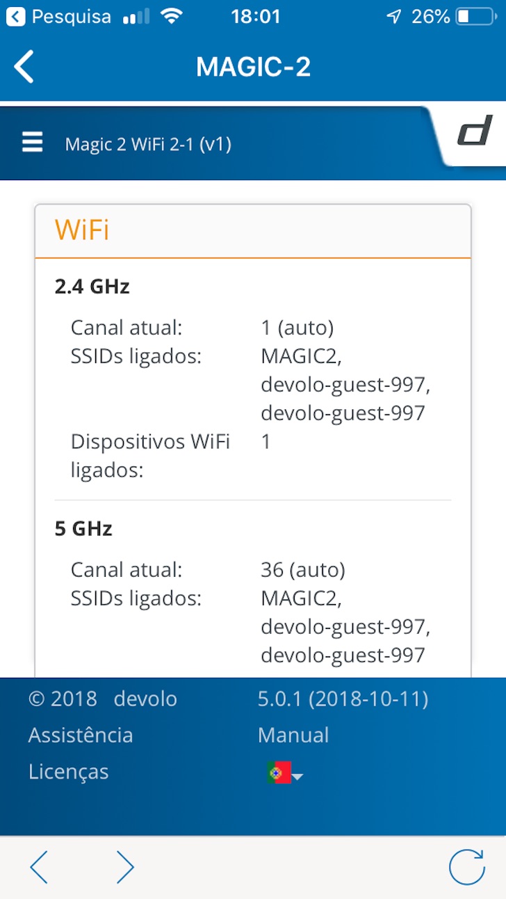 Para melhor confirmar a performance deste novo modelo da Devolo, pedimos o upgrade do nosso Router de serviço, para o novo modelo da NOS, com o canal de 5 GHz e velocidade de 200 Mbts.