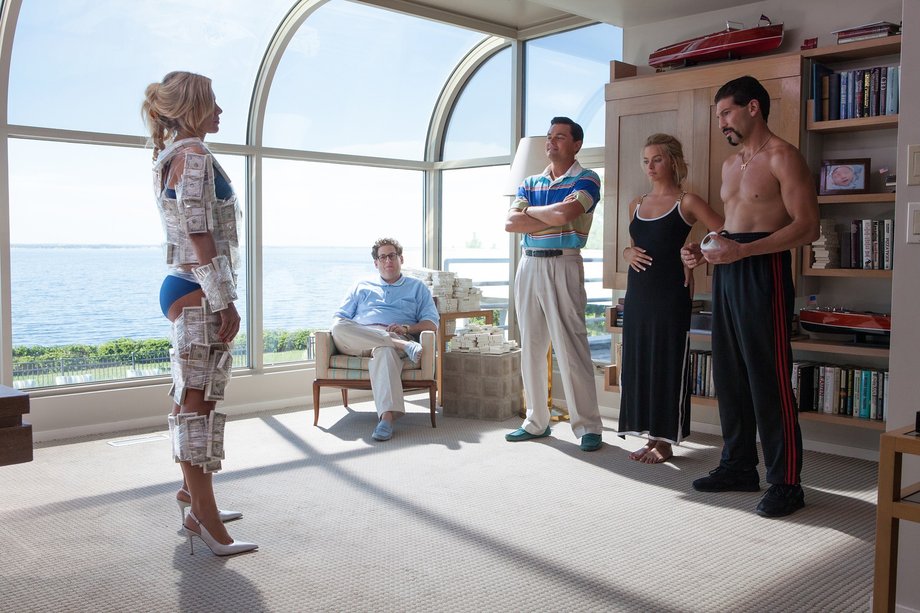 E é esta sofisticação, diretamente retirada dos arquivos Armani por Sandy Powell (a figurinista que ganhou Óscares por “A Paixão de Shakespeare” e “O Aviador”, tendo ainda no currículo mais sete nomeações – por películas como “Gangues de Nova Iorque” ou “A Invenção de Hugo”), que Belfort atinge. Sendo que a fita de Scorsese cobre mais de uma década de deboche, a evolução do guarda-roupa é um dos pontos mais interessantes da perspetiva estética. Começando com fatos de pouca qualidade e progredindo para exemplares da marca italiana, a personagem de DiCaprio atinge o auge quando os fatos são feitos à medida, por um alfaiate formado em Saville Row (reza a lenda que Belfort tinha o seu alfaiate privado, altamente qualificado). Os tempos de lazer poderiam ser retirados de um anúncio da Ralph Lauren de 1996: pólos, caquis com duas pregas, mocassins Gucci e wayfer Ray-Ban desfilam no espetáculo de marcas que espelhavam um estatuto ávido por não se esconder.