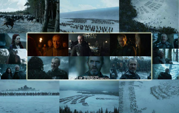 Na série não temos essa noção, mas as visões de Melisandre são muitas vezes mal interpretadas pela própria e este foi mais um desses casos. A maior atrocidade que um pai pode cometer fez-nos abandona-lo no episódio nove, no episódio dez foram o seus soldados, cavalos, mulher (morte essa que não causa tristeza), Melissandre e o próprio reino. Poderia dizer que teve o que mereceu, mas não estaríamos a ser justos. Foi um homem que não soube escolher bem quem o guiasse e Sor Davos bem tentou, mas sem sucesso (a maneira como o Cavaleiro da Cebola descobre a noticia das mortes é bastante anti-climática para a importância que a série deu ao duo). Esta ausência cria um verdadeiro vácuo na pretensão ao trono e em King’s Landing respira-se de alívio.