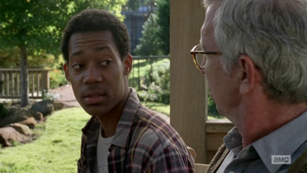 e) Rick e Pete (marido da Jessie) … começam as apostas para quanto tempo Rick demorará a enfiar-lhe uma bala na testa. É realmente aquele tipo de personagem que assenta como uma luva no género em que Rick não gosta de perder muito tempo para “tentar” resolver o problema…simplesmente, resolve. Mas, nota-se claramente que o mesmo está a tentar inserir-se com pacificidade na comunidade, pelo seu bem,e pelo bem do seu grupo. No entanto, dificilmente conseguirá suster o aviso da Carol.