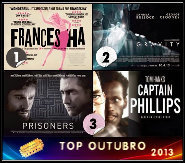 “Frances Ha” acabou por ser considerado o melhor filme do mês de outubro com nota média de 8,38 entrando diretamente no top 10 do ano em terceiro lugar. Em segundo posto ficou o filme de Alfonso Cuarón, “Gravidade” com classificação de 8,22 (entra para o 10º lugar do top do ano). A fechar o pódio, ficaram dois filme com 8,00: “Raptadas” de Denis Villeneuve e “Capitão Phillips” de Paul Greengrass.