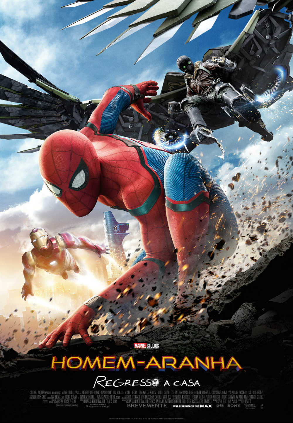 - Atores: Tom Holland, Chris Evans, Robert Downey Jr., Martin Starr, Marisa Tomei, Michael Keaton, Zendaya, Donal Glover, Michael Mando, Jon Favreau, Logan Marshall-Green, Angourie Rice, Stan Lee