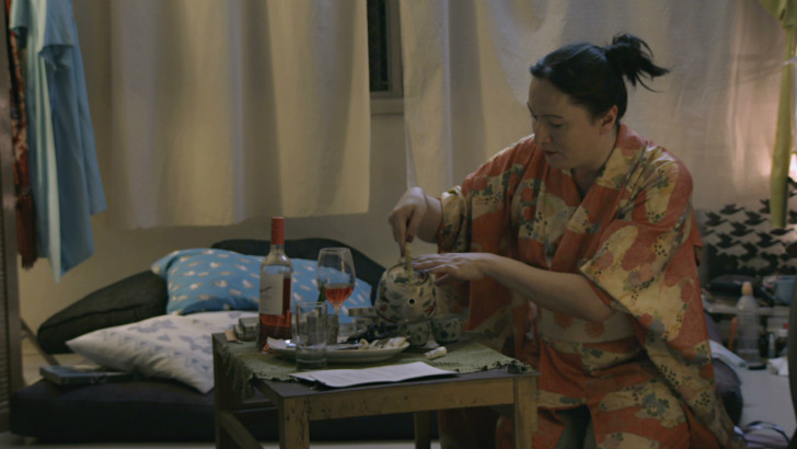 Mesmo a sua preocupação em não se apresentar como uma vítima acaba por ganhar um teor quase meta cinematográfico, sendo ela uma atriz a modular o seu papel. Neste caso, o papel é ela mesma, Julia Katharine, a mulher, a atriz, a brasileira que esteve no Japão a tentar conhecer o pai e agora se pavoneia em quimonos caros pelo seu apartamento enquanto fala da sua preferência pelos dramas domésticos de Ozu em comparação com as obras de Kurosawa e Mizoguchi. Esse sim, é um dos momentos mais descaradamente encenados do filme, tanto que, mesmo depois de cortar, Vinagre não para de filmar, mostrando-nos a atriz a sair, ou não, do papel de si mesma no documentário.