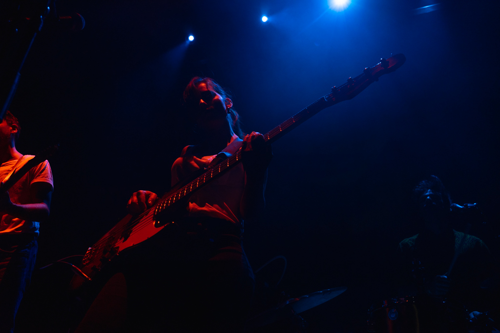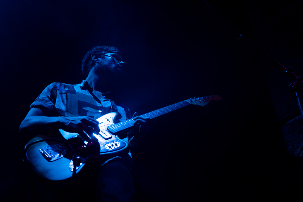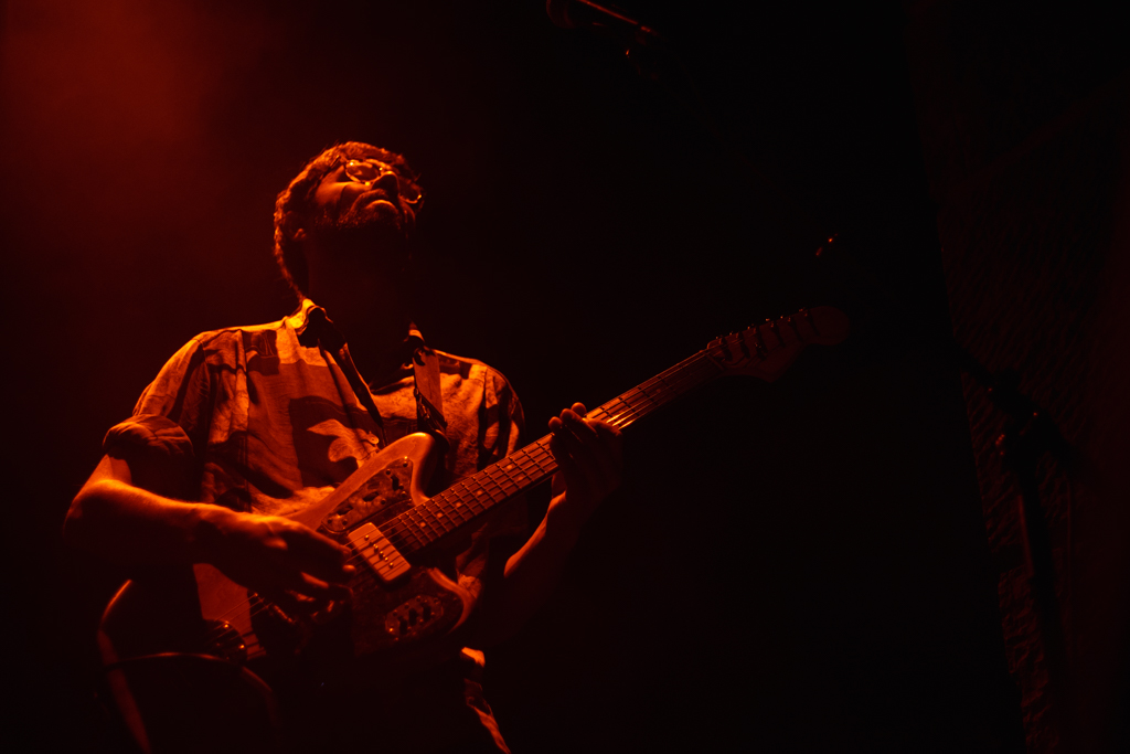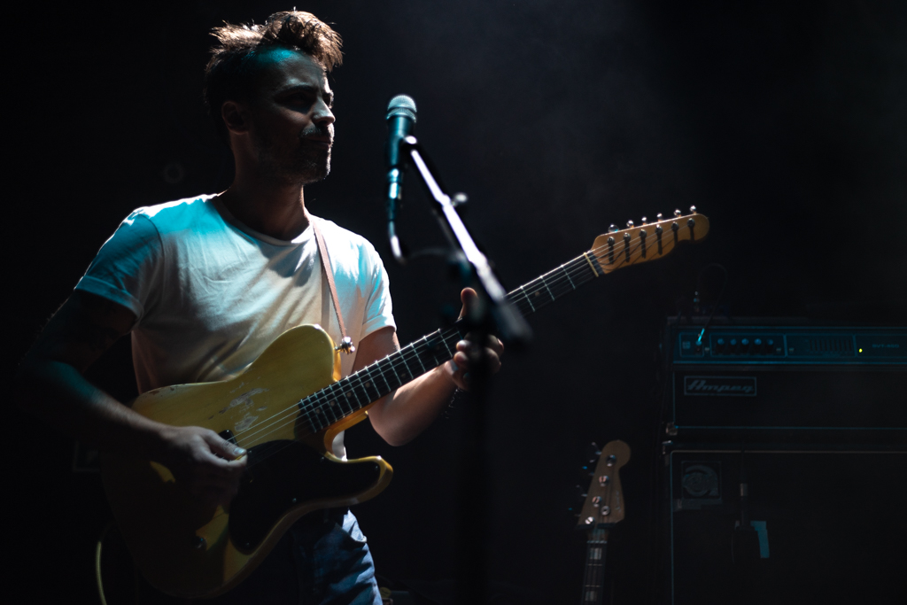 Regressamos ao primeiro álbum de estúdio dos Linda Martini, Olhos de Mongol (e ao EP homónimo de estreia), com a performance de três favoritos do público, “Lição de Voo Nº1”, “Estuque” e “Amor Combate”. O pós-rock característico da primeira fase da banda alimenta-se das dinâmicas entre elementos, bem como das suas vistosas individualidades. Cláudia dedilha algumas das mais enternecedoras linhas de baixo que já ouvi, operando o instrumento como se de um prolongamento do seu torso se tratasse. Hélio delibera o tempo, impelindo para a frente ou abrandando as composições. As guitarras deambulam, desafogadamente, pelos versos de André, que recorre à voz para se distanciar deste género musical. Orações de significado entranhado. Não tanto pelo que expõem no seu sentido mais literal, mas antes pelas lembranças de tempos passados que acarretam. Todos as escutamos de forma díspar, todos as replicamos de modo igual. “Por tanto quereres o que não tens, a voz é surda atrás da mão”.