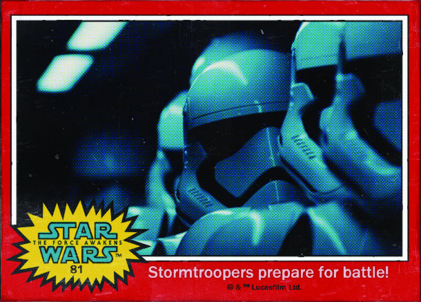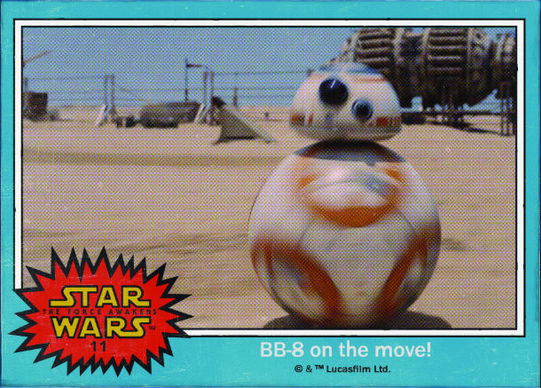 Os novos cartões revelam a imagem de 8 personagens e naves e o respectivo nome e foram inspirados nos cartões colecionáveis do primeiro filme da saga Star Wars em 1977. Realizado por J. J. Abrams (Super 8, Mission: Impossible III) e escrito por J.J. Abrams e Lawrence Kasdan (Os Salteadores da Arca Perdida, O Império Contra-ataca, O Regresso de Jedi), Star Wars: O Despertar da Força teve o início das filmagens, na Primavera de 2014, nos Pinewood Studios.