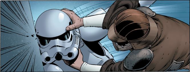 Graficamente o livro está fantástico, aproximando-se bastante dos filmes, tentando recriar um design que se enquadre com o que vemos nos filmes e dando, ao mesmo tempo, uma sensação de ritmo bastante agradável. Outro aspeto interessante está no facto de, muito suavemente, os personagens nos darem detalhes que nos ligam aos filmes, quer seja com uma frase, com uma atitude, etc… Ver Han Solo a gritar com C3PO, ou Leia a desconfiar da capacidade de Solo em resolver as situações são apenas detalhes no meio de uma história interessante e que começa já a responder a algumas perguntas.