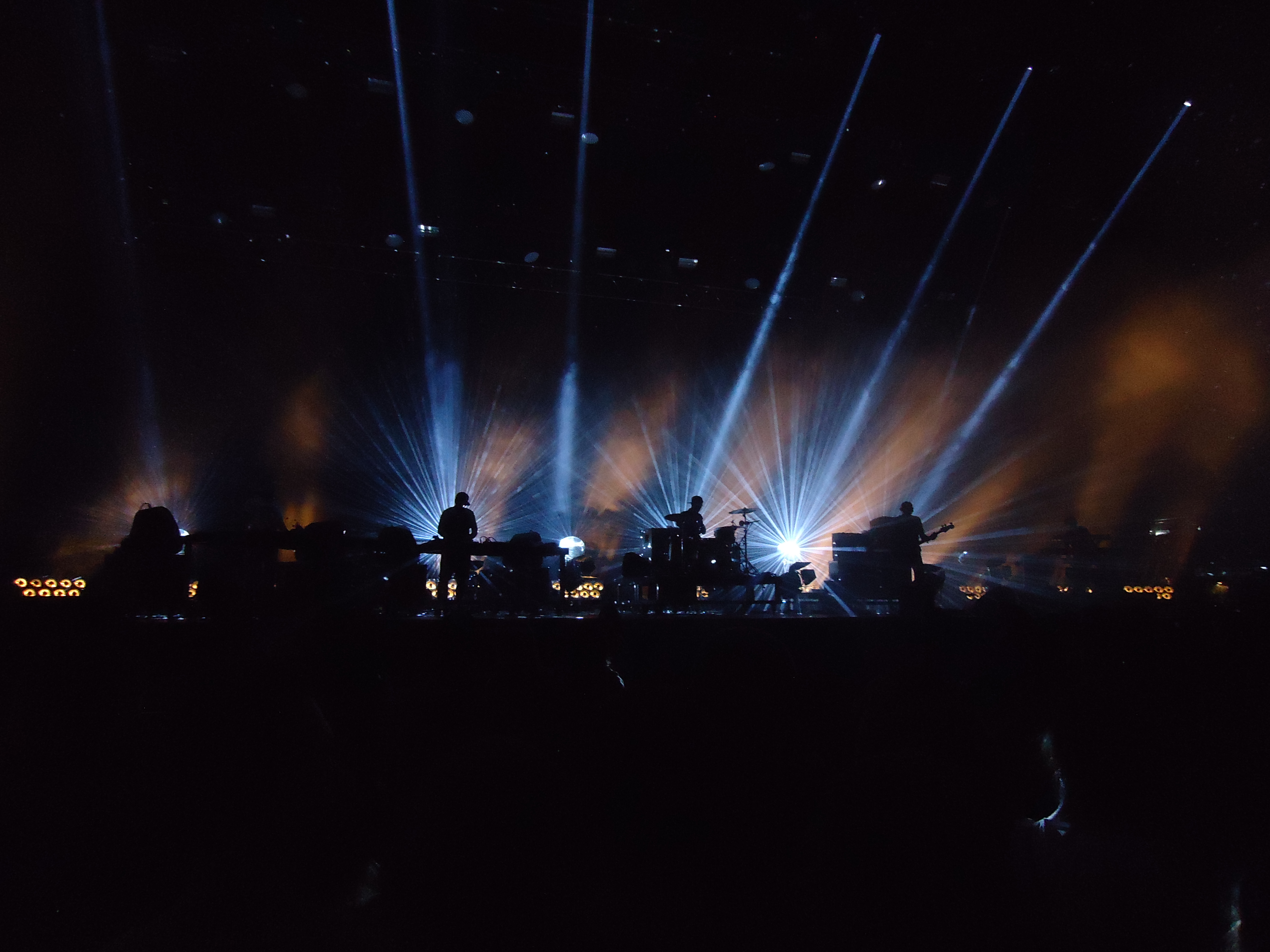 Seguimos diretamente para a MEO Arena, de onde contávamos já só sair de madrugada de sorriso nos lábios e com o coração cheio. Os Orelha Negra abriam as hostes já a noite se começava a pôr lá fora. Aperitivos do terceiro e novo álbum, com lançamento previsto para este ano, foram lançados ao público como se fossem rebuçados ali mesmo concebidos naquele laboratório musical do qual fazem parte Sam The Kid, DJ Cruzfader, Fred Ferreira, Francisco Rebelo e João Gomes. O funk e o soul misturam-se num banho de eletrónica, mas até é o hip hop que lhes está nas raízes. O espetáculo visual é só um pequeno assessório que torna aquele concerto dos Orelha Negra numa jornada etérea para quem assiste.