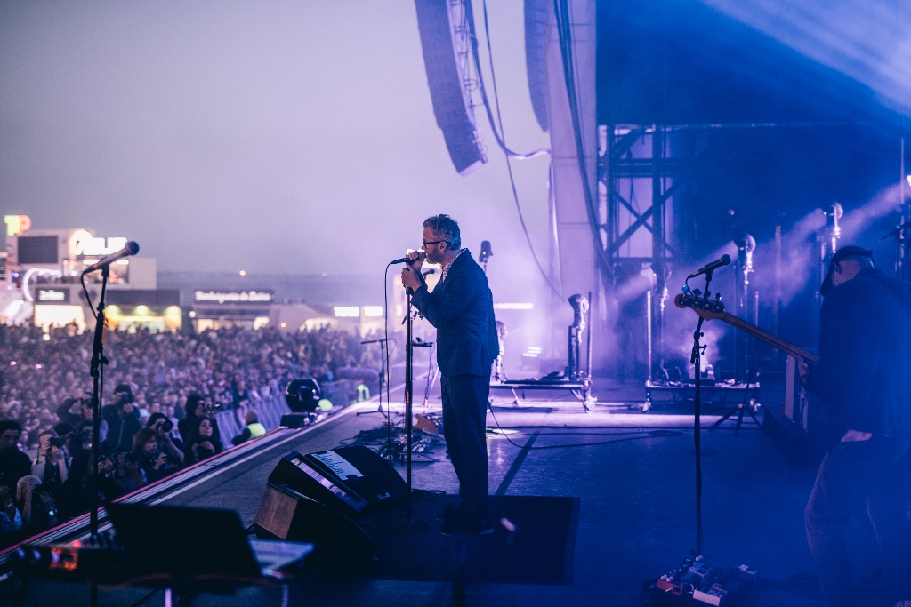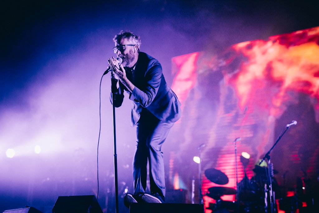 Mathew Berninger, sempre de fato e camisa, entra à frente. Mãos no microfone, olhos fechados, todo entregue ao que diz, para nos convencer de que “I cannot explain this in any other way”, o vocalista enamora-se do pequeno instrumento, contando-lhe uma história como se mais ninguém lá estivesse. O ritmo inconfundível de “The System Only Dreams In Total Darkness” ecoa pelo campo fora. O magnífico (vá lá, toda a gente sabe isso) baterista Bryan Devendorf pedala-o directamente no nosso peito, que vibra a cada batida.