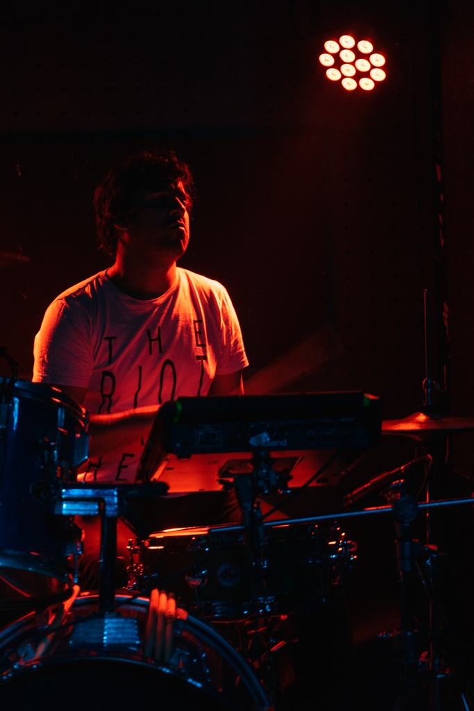 Não se deixando esmorecer pela desafeição da audiência (à excepção de dois jovens na linha da frente, que aparentam ter mergulhado de cabeça no almejado estado de transe), Demian Castellanos e Tom Relleen vão trocando sorrisos ocasionais. Assentando o meu ponto de vista neste incontestável grau de proximidade, encontro-me piamente convencido de que mais do que tentarem encher as medidas ao público, os britânicos ambicionam superar-se a si mesmos, enquanto músicos individuais e enquanto colectivo. O habilidoso baixista acena a cabeça, como sinal de aprovação, sempre que Demian, de modo abrupto, se resolve exceder na guitarra. A sua convivência é contemplada pelo mecânico baterista, cujo envolvente estilo de percussão cada vez mais se assemelha ao de Jaki Liebezeit. Deixo a batida entranhar-se no meu corpo, sinto o chão vibrar com os graves. Emparelhados pelo ruído que produzem, os Oscillation transformam o Sabotage Club numa labiríntica e agourenta paisagem apocalíptica, da qual somos resgatados, apenas e só, pelas raras composições que substituem a densa sonoridade krautrock/ space rock pelo pós-punk dos The Cure.